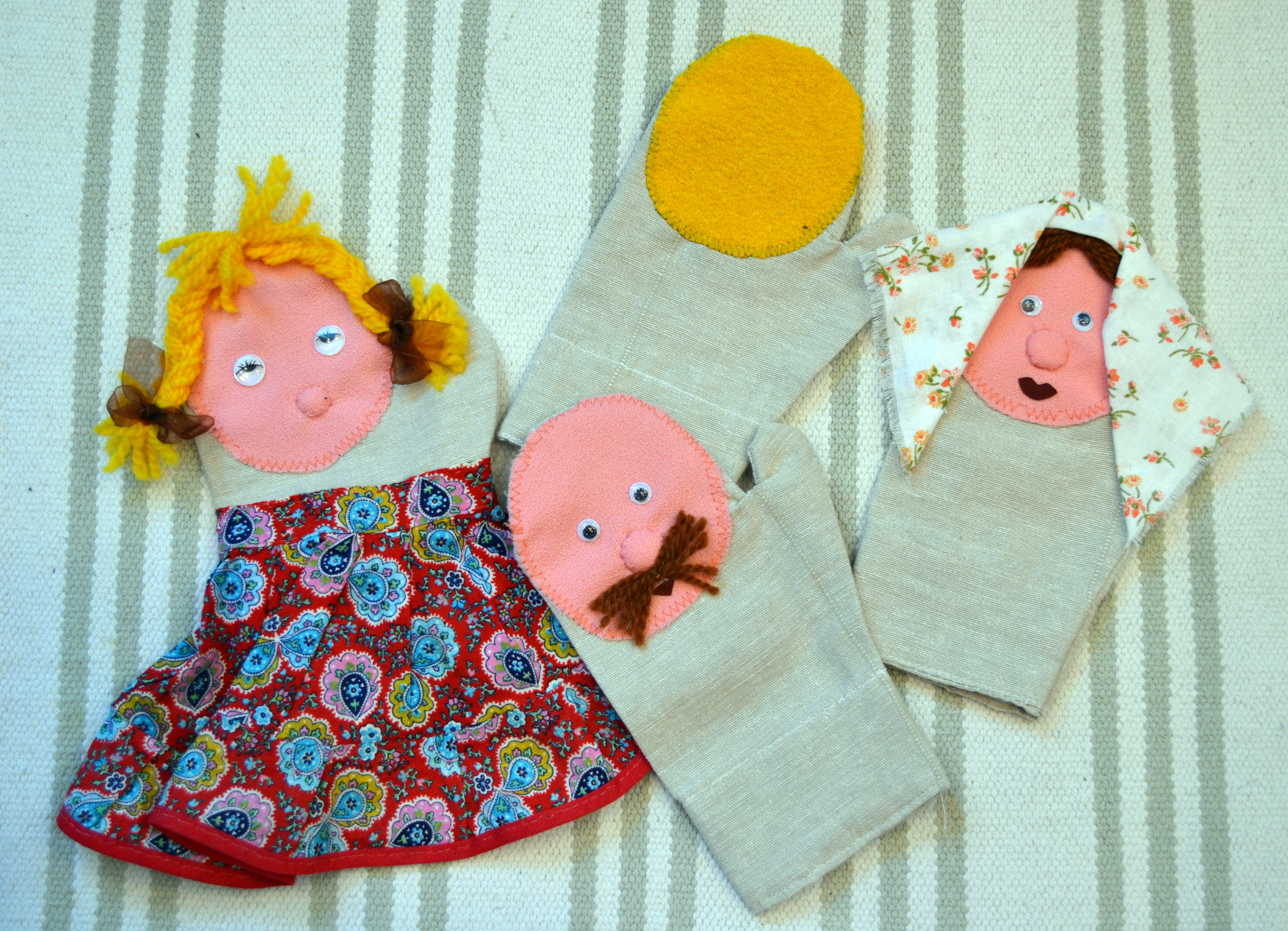 Забавные куклы-рукавички. Если они театральные, значит, это кукольный театр? А что? Вполне себе можно взять на заметку подобный тетр. Спасибо. Оригинально!