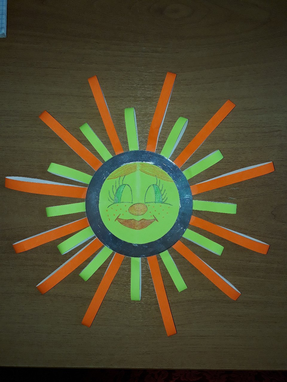 Активные детки растут в школе №106 города Волгограда. Техника работы знакома по другим изделиям. Спасибо за находчивость. Милое получилось солнышко.