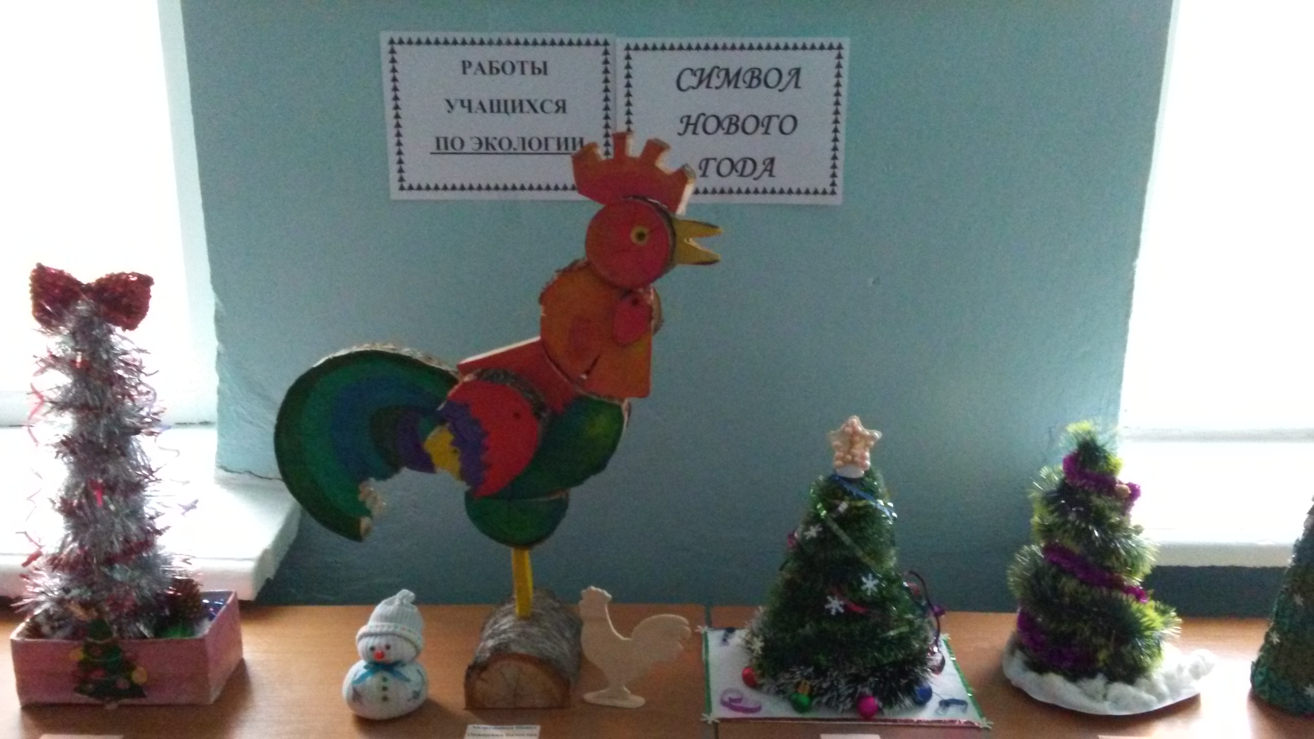 Я как учитель географии и биологии веду экологический кружок, где учащиеся под моим руководством выполнили в год «Огненного петуха» поделку из дерева. При изготовлении использовался материал - дерево, краски. Петух получился оригинальный и красивый.