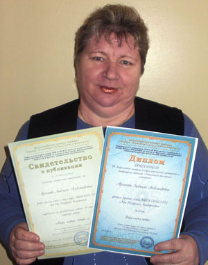 Друзья! Работа с ребятишками (своими и детсадовскими) занимает столько времени, что порою не до выхода в Интернет (где зайдёшь на 5 минут, а выйдешь часа через 3-4)... Сейчас выкроила времечко, чтобы послать всем коллегам сердечный дальневосточный привет и огромнейшую благодарность Экспертной Комиссии за то, что так высоко оценили мою работу. "Лауреат 1 степени" - звучит-то как!!!! Честно говоря, это первый опыт моего участия в подобных конкурсах... Успех вдохновляет!!! Уже горю желанием поучаствовать где-нибудь ещё!!! Спасибо за доброту!