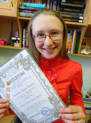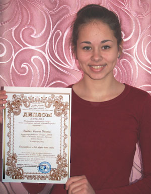 Очень благодарна организаторам и Членам Экспертного Совета этого замечательного конкурса! Благодаря вам раскрывается множество талантов. Участие в подобных конкурсах - это шаги по ступеням, которые ведут в великое будущее. Я очень рада, что попала в число лауреатов. Это помогло мне осознать, что мой труд не напрасен, что у меня есть талант, ведь мою работу оценили по достоинству люди, которые высоко ценят поэзию.Спасибо вам большое!