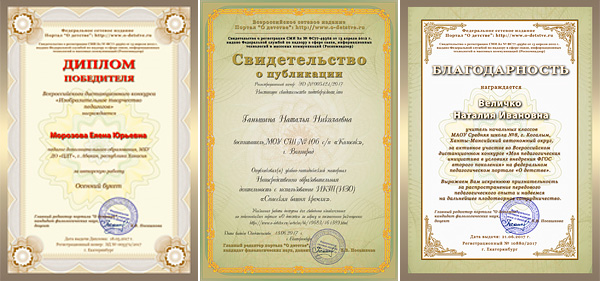 Мы понимаем, что иногда педагогу срочно требуются документы, подтверждающие его участие в дистанционных мероприятиях. Поэтому на нашем портале открыты Всероссийские дистанционные он-лайн конкурсы с ускоренными сроками подведения итогов. Учредитель и Организатор конкурсов: Федеральное сетевое издание Портал «О детстве» (Свидетельство о регистрации СМИ Эл № ФС77-49362 от Роскомнадзора).