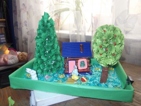 Спасибо, Женя, за участие в конкурсе! Мне понравилась твоя пушистая ёлочка, таинственная избушка, яркая яблонька. Композиция получилась, а фотографии не очень, обязательно научись подавать свои работы качественно. Желаю тебе удачи, дорогая!