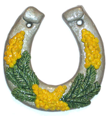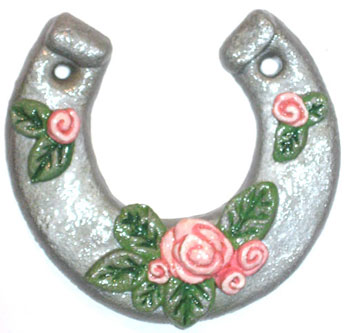 Сушите готовое изделие в комнате (несколько дней), или в духовке при 50-70 градусах. Высохшее тесто при стуке издает звук, похожий на звук керамики. Готовую подкову раскрасьте гуашью, акрилом или масляными красками, покройте лаком.