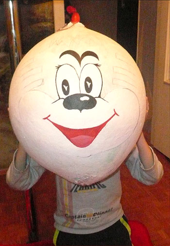 1. Надули шарик до нужного размера, обклеили кусочками газет по принципу папье-маше в 3-4 слоя. Оставили просыхать (у нас корпус просох за ночь).