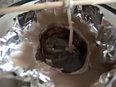 6. Когда свечная масса начнет застывать и немного посветлеет...