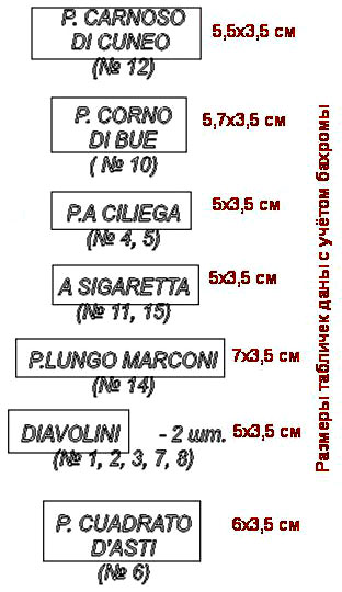 6. Прикалываем булавочками заготовленные на компьютере трафареты с названиями перцев. Строчим по буквам мелкими строчками с закрепками на концах и началах каждой буквы, чтобы надписи не распустились. Точки после букв, где необходимо, делаем закрепками. Кусочки бумаги очень аккуратно удаляем цыганской иголкой, чтобы не повредить нитки.