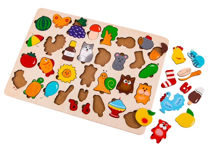 Существует большое разнообразие таких пазлов. Одни из них направлены на то, чтобы познакомить малыша с понятиями "больше-меньше". Выемки в них одинаковой формы, но разного размера. С помощью других можно выучить буквы или цифры, названия животных или моделей транспорта. С такими рамками под силу справится совсем маленьким деткам, от 1-1.5 лет.
