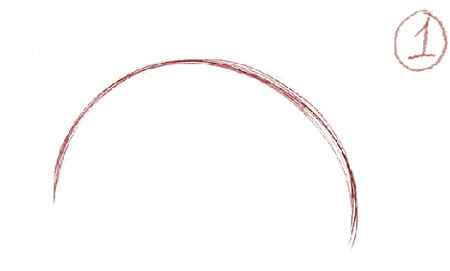 Шаг 1. Рисуем простым карандашом, тогда можно легко поправлять свой рисунок ластиком. Нарисуем половинку круга, похожую на радугу. Это спинка ёжика.