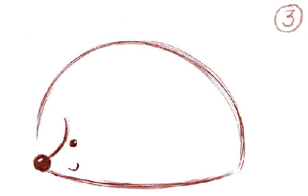 Шаг 3. От носа нарисуем линию мордочки. Пририсуем на мордочке глазик и ротик. Теперь наш ёжик улыбается солнышку!