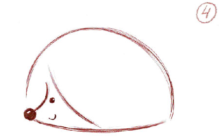Шаг 4. Нарисуем линию, которая отделяет мордочку ёжика от иголок.