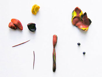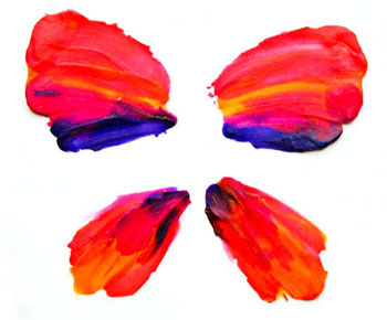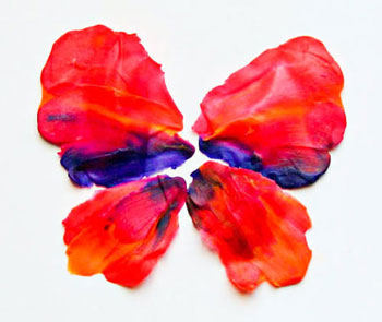 Пальцами размажем кусочки пластилина на доске, придавая мазкам форму верхних и нижних крыльев бабочки.