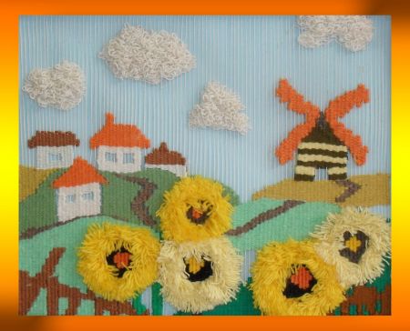 Дорогая Леночка! У тебя очень красивая работа, солнечная, яркая, живая! Сразу вспоминается лето. К тому же гобелен- очень сложен в исполнении, у тебя хорошие ручки, счастья тебе и успехов в будущем.