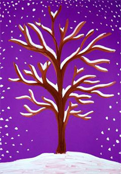 Теперь «кладём» на ветки белоснежный снег, укрываем землю, ставим точки – падающие снежинки. Получилось очень красиво!