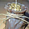 Нам понадобится: свечная масса, посуда для паровой бани, пищевая фольга, фитиль с грузиком на одном конце, восковая золотая фольга, ароматизатор.