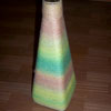 Такую вазу сделать очень просто, понадобится только: клей момент, пряжа и стеклянная бутылка интересной формы.