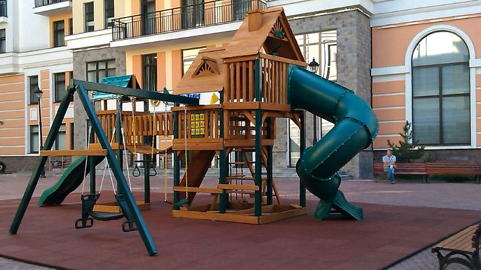 Профессиональный монтаж детских площадок — задача ответственная. Узнать подробнее об установке оборудования можно при переходе по ссылке. Нельзя монтировать площадки на бетоне, асфальте, другой твердой поверхности, падение на которую всегда ведет к травматизму. Часто используют специальное наливное резиновое покрытие. Это удачный вариант для размещения детской площадки, который могут предложить специалисты.