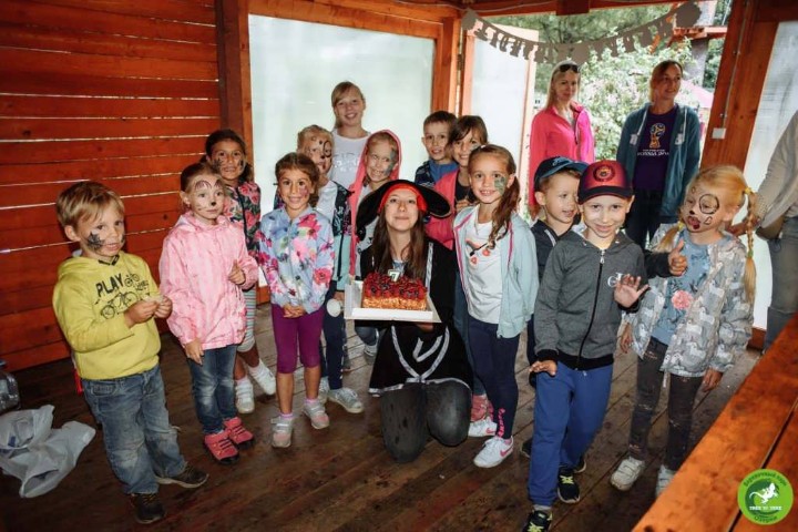 Такой вариант празднования дня рождения подойдет, если к вам приглашены гости разных возрастов. Малыши 3-6 лет смогут проводить время на скалодроме, многочисленных батутах. Дети постарше будут преодолевать препятствия на трассах разного уровня сложности. А взрослые в это время смогут просто насладиться красотой окружающих лесных пейзажей в удобной беседке.