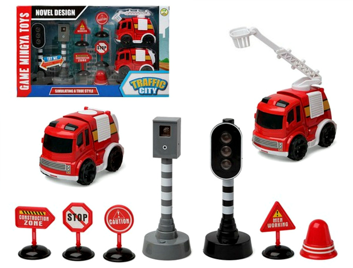 Также в таких наборчиках могут быть дорожные знаки – отличный выбор, если в процессе игры вы хотите научить малыша элементарным правилам дорожного движения.