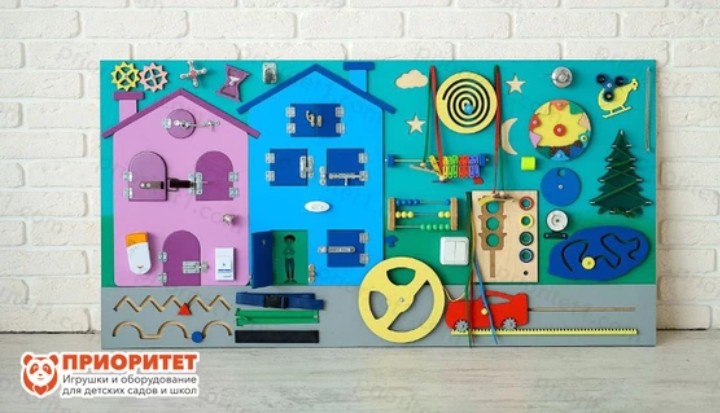С бизибордом можно придумать множество увлекательных игр. Например, предложите малышу найти все синие детали или открыть все замочки в определенной последовательности. Можно устроить игру «Угадай на ощупь», где ребенок с закрытыми глазами ищет заданный элемент, или создать целый сказочный квест, где каждое действие с бизибордом становится частью увлекательной истории.