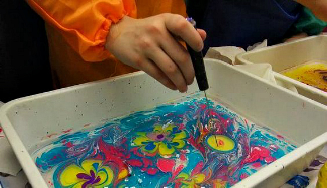 Творческие рукодельные мастер-классы для детей помогают освоить новые виды искусства, научиться создавать своими руками интересные сувениры. Самые необычные изделия, которые сейчас всё больше набирают популярность в Москве и других городах, это эбру – рисование на воде. В этом случае изображение создаётся на подготовленной заранее воде и потом переносится на бумагу или ткань.