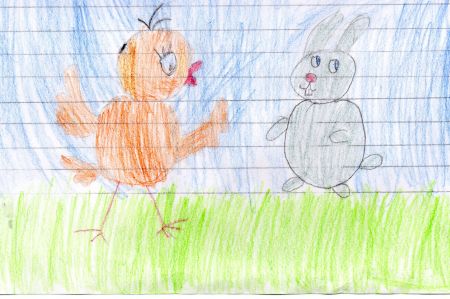 Какая наблюдательная маленькая девочка Аннушка. Все-то она приметила в своем зоопарке: и цыплят, и курочек, и петушков, даже страусов. И рисунок на тетрадном листке мне тоже понравился. Молодец, девочка, продолжай сочинять сказки.