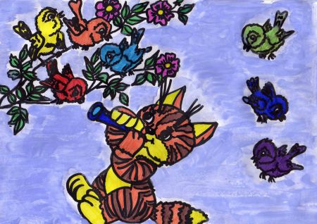 Такой веселый, задорный котенок. Наверное он волшебник, если сумел оживить радугу и превратить каждый цвет в веселую птичку! Арина, спасибо тебе за рисунок. Тебе и Наталье Николаевне удачи в конкурсе!