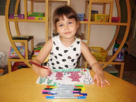 Ева – любительница рисования. Она с большим желанием рисует разные сюжеты, используя не только фломастеры и цветные карандаши, но и тесто для лепки. В её рисунках можно увидеть зверят, свою семью, а также летние композиции.