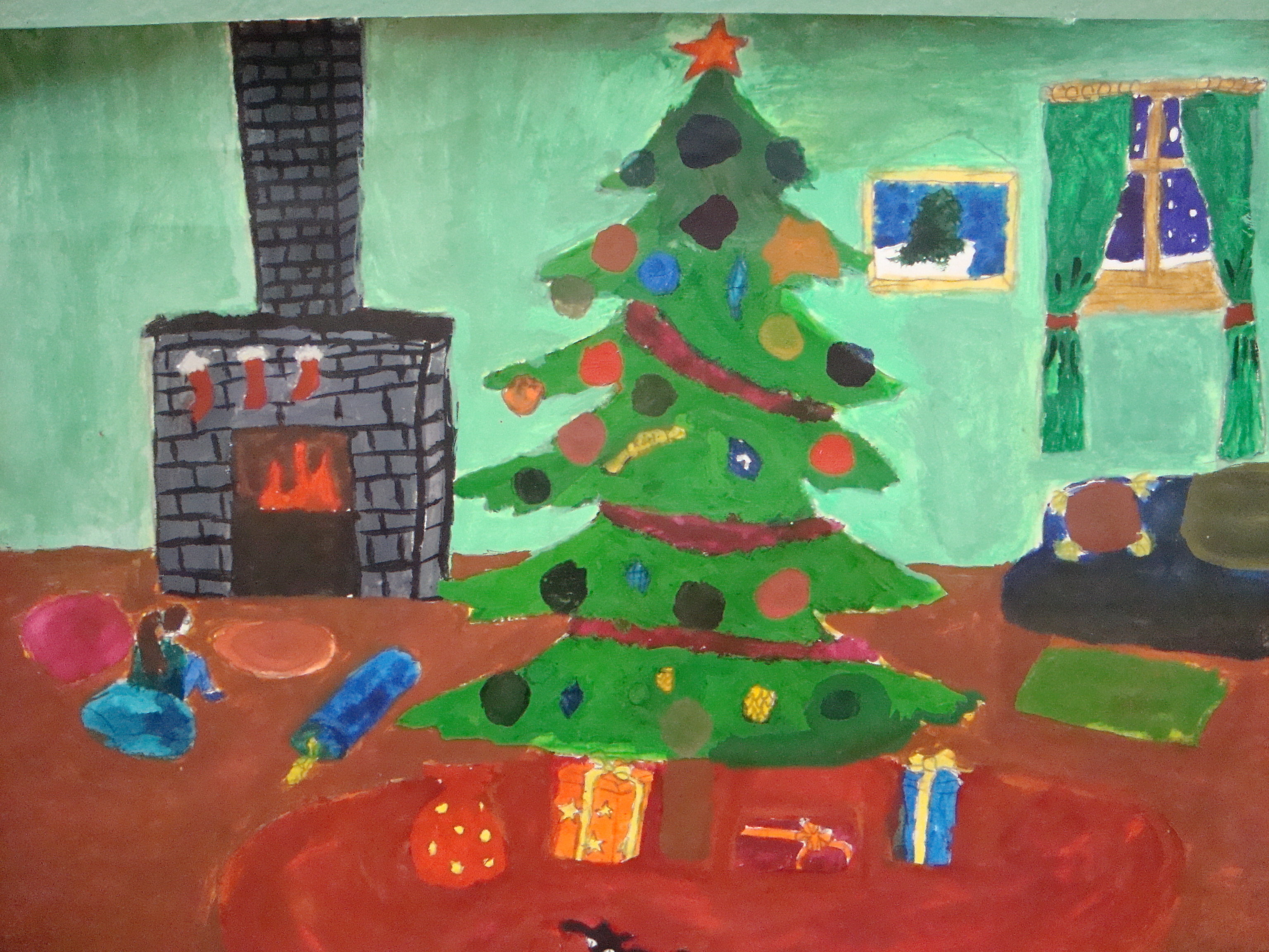 И в самом деле, совсем скоро у елки соберется вся семья, ведь скоро Новый год. Все будут сидеть у камина и вспоминать события уходящего года. Наверное, об этом мечтала юная художница Майя.