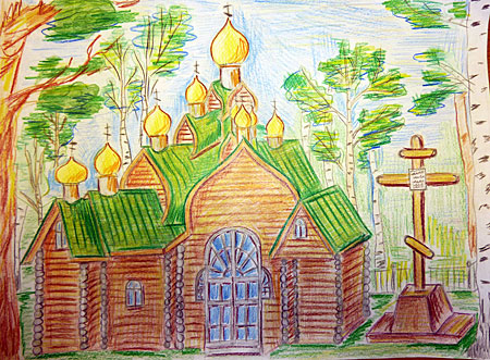 Дорогая Ксения! В твоих рисунках видно, что ты очень любишь природу. Тебе удается передача свето-теней на листве, лес, окружающий храм написан с легкой почти профессиональной небрежностью, удались блики на куполах. немного не понятно назначение огромного креста,грубо перебивающего, с моей точки зрения, лиричность и воздушность, передаваемые образами храма и леса. Рост мастерства автора заметен. И, конечно, видна кропотливая работа преподавателя с талантливой ученицей.