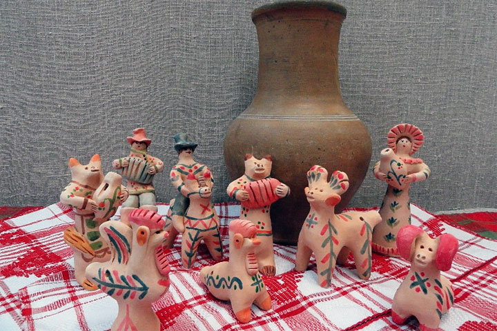 Это образ мастерицы, которая вместе с детьми сделала целый хоровод глиняных игрушек, и теперь они все идут на ярмарку. Старооскольская игрушка внесена во Всесоюзный каталог игрушек в Москве.