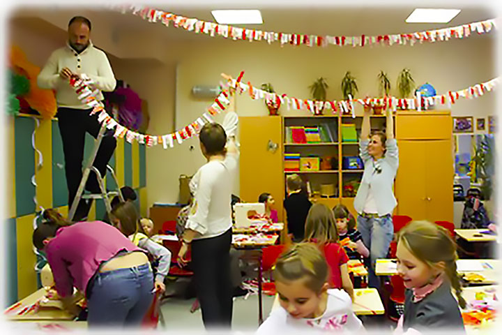 Дети: «А всё-таки, хорошая у нас в этом году была ёлка! Мы ведь все игрушки сами сделали! ВСЕ вот эти разные игрушки сделаны нами вручную. Мы как в старину делали!!»