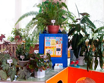 В уголке природы размещены не только комнатные растения, но и календарь погоды, яркие иллюстрации, познавательные энциклопедии, книги о природе, дидактические игры, поделки из природного материала, оборудование для исследовательской деятельности.