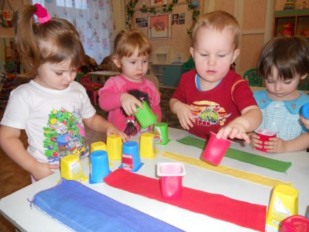 Сенсорное воспитание в раннем возрасте – одно из главных направлений развития малышей, позволяющее им познать мир в многообразии красок, форм, материалов. Фотография демонстрирует использование педагогом нестандартных материалов в игровой деятельности детей, направленной на освоение ими сенсорных эталонов. Считаю, что применение в практике работы воспитателя современных материалов, отвечающих эстетическим, гигиеническим и педагогическим требованиям, оправдано.