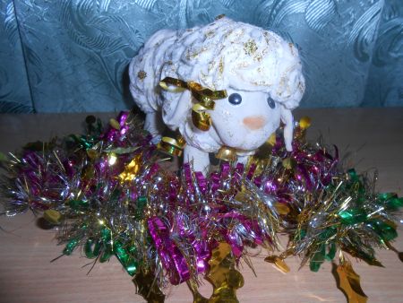 Ирина Владимировна, мне выполнение овечки напомнило шитьё мягких игрушек, только вы для устойчивости добавили каркас из проволоки. Игрушка красиво украшена. Символ года любого порадует! А белоснежная ёлочка из ватных дисков очень легка в исполнении, и с такой работой может самостоятельно справиться старший дошкольник. Спасибо!