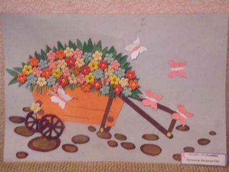 Потихоньку осваиваем технику квиллинг с детьми старшего дошкольного возраста. Вашему вниманию представляю картину «Незабудки в тележке».