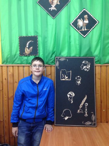 Светлана Александровна, ребята! Спасибо за любовь к творчеству и литературе! Все образы читаемы, узнаваемы. Четкость и аккуратность исполнения придает выразительности, созданным образам и деталям. Выбор контрастного фона способствует их точному прочтению. Каждый элемент хочется рассматривать. Молодцы! «Знакомые лица» интересно расположились по диагонали, а вот свеча, перо и книга живут, к сожалению, каждый самостоятельной жизнью, что придает общей композиции дробность. Каждый элемент сам по себе. Если их объединить внизу, слегка наметив линию стола или расположить на одном уровне, композиция приобретет устойчивость и целостность. А вот корабль, который хоть и не участвует в конкурсе, но хорошо виден на фотографии, прекрасно скомпонован и смотрится очень цельно. Это говорит, что потенциал есть и его нужно использовать!