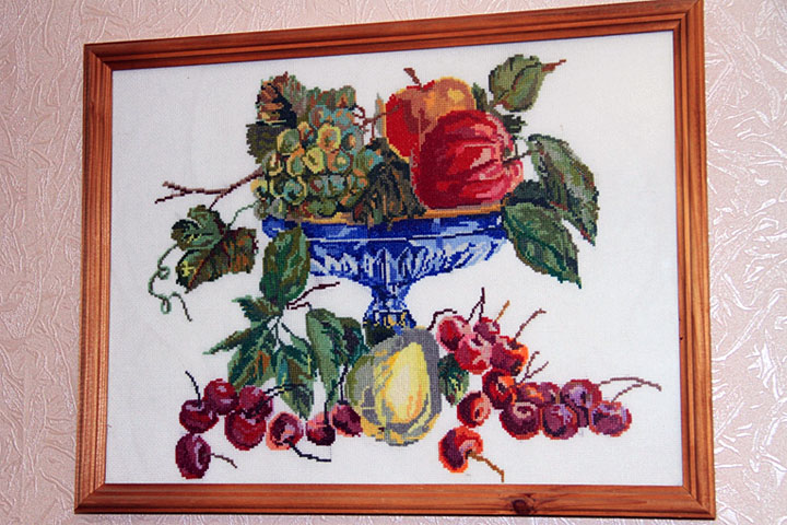 На картине изображены фрукты и ягоды, которые напоминают нам о теплых летних днях.