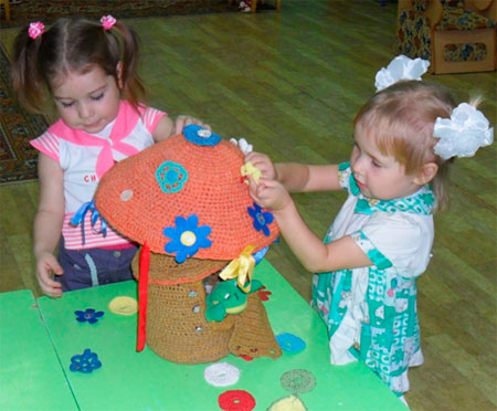 Этот гриб - настоящая находка для детишек!! Он не только способствует развитию моторики, но и служит замечательным ярким украшением Вашей группы!