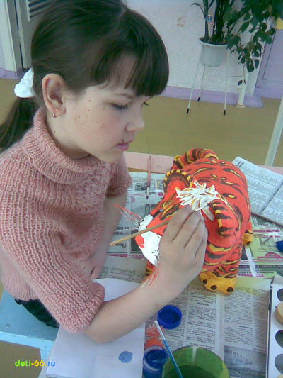 Из старой бумаги можно сделать папье маше. Папье-маше по-французски – «жеваная бумага». Это масса из бумаги и клея. В сыром состоянии она очень эластична, а высыхая, становится твердой и прочной. Лепить из нее просто и увлекательно. Главное, что вам понадобится, – это терпение и аккуратность. А вот нам проще взять выбросить старую бумагу, чтобы был порядок. Оказывается не надо торопиться выбрасывать, этот материал поможет сделать нечто необыкновенное, красивые игрушки. И вот она – новая жизнь старой, никому не нужной бумаги, которой суждено было погибнуть. Это моя игрушка из папье-маше – тигренок.