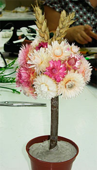 В результате проведенного мастер-класса слушатели ознакомились с основными понятиями, инструментами, материалами, приспособлениями флористического дизайна и научились изготавливать флористическое дерево.