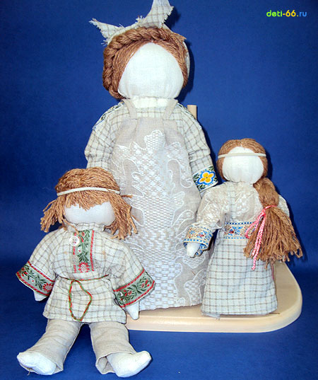 Все очень символично! Первая статья, первая игрушка - обрядовый символ, народный костюм, рукоделие ребенка, семья. Пусть куклы будут обрегом всего доброго, что храниться на портале "О детстве".