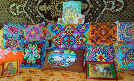 Пять лет назад я начала заниматься вышивкой крестом. Сначала это были маленькие детские картинки, потом начала вышивать подушки, их у меня очень много.