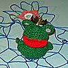 Связать шапочку, затем дополнительные детали: ушки, носик. Дооформить глазками и усиками.