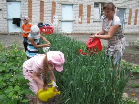 Во время практической работы с детьми 6 -7 лет проводим на огороде посадку, полив растений. На грядке где растет овес, ждем появление зеленых колосков. И все это делаем с хорошим настроением!