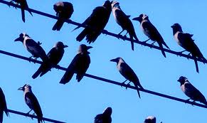 На проводе каркали и трепыхались