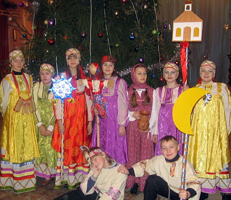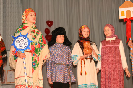 русская мелодия, выходит Настенька в русском костюме, из-за ширмы появляется