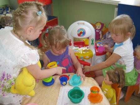 С этими словами я начинаю в детском саду новый день. 1 августа в мою группу №10 «Ромашка» пришли дети в возрасте 4 лет. Большими, удивленными глазами они входят в приемную, осматривают её. Дети радуются бумажным цветным зверюшкам на шкафчиках, ищут свой шкафчик, общаются друг с другом и с интересом заглядывают в группу. Они видят на стенах солнышко и бабочек, девушку Белоснежку и семь гномов, и им все интересно в нашей красивой группе. Кто шагом, а кто бегом входят в группу, подходят к игрушкам, находящимся в разных местах группы и начинают весело играть, а родители спокойно, с хорошим настроением уходят на работу.