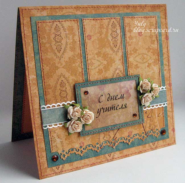 Сделайте открытку оригинальной: добавьте немного фантазии и, например, и используйте любимые цвета учителя.