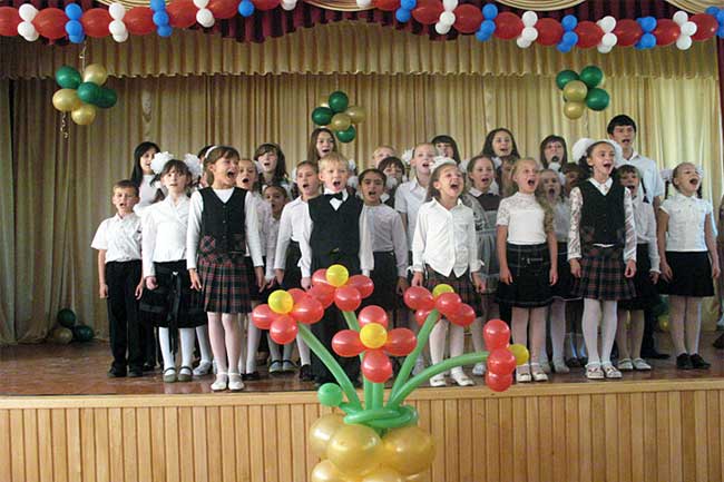 Подготовить и провести концерт можно, например, в актовом зале сразу для всего педагогического состава школы. Главное – задействовать как можно больше желающих и тщательно продумать сценарий.